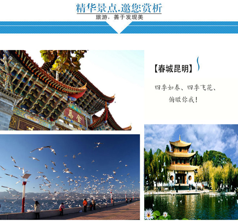 ☆精选的景区  精挑细选云南省著名旅游景区,让你玩的开心,玩的舒心。